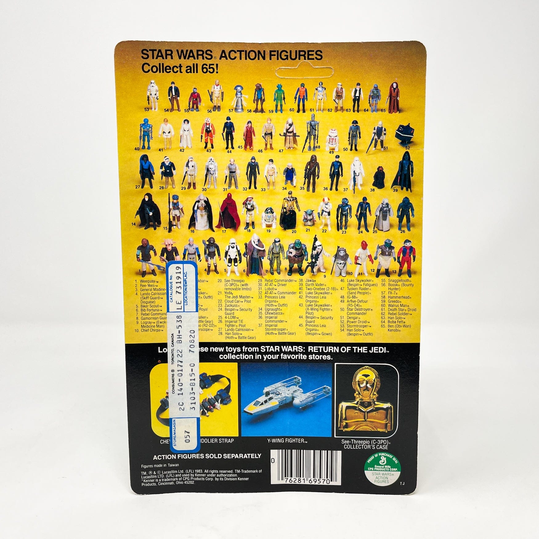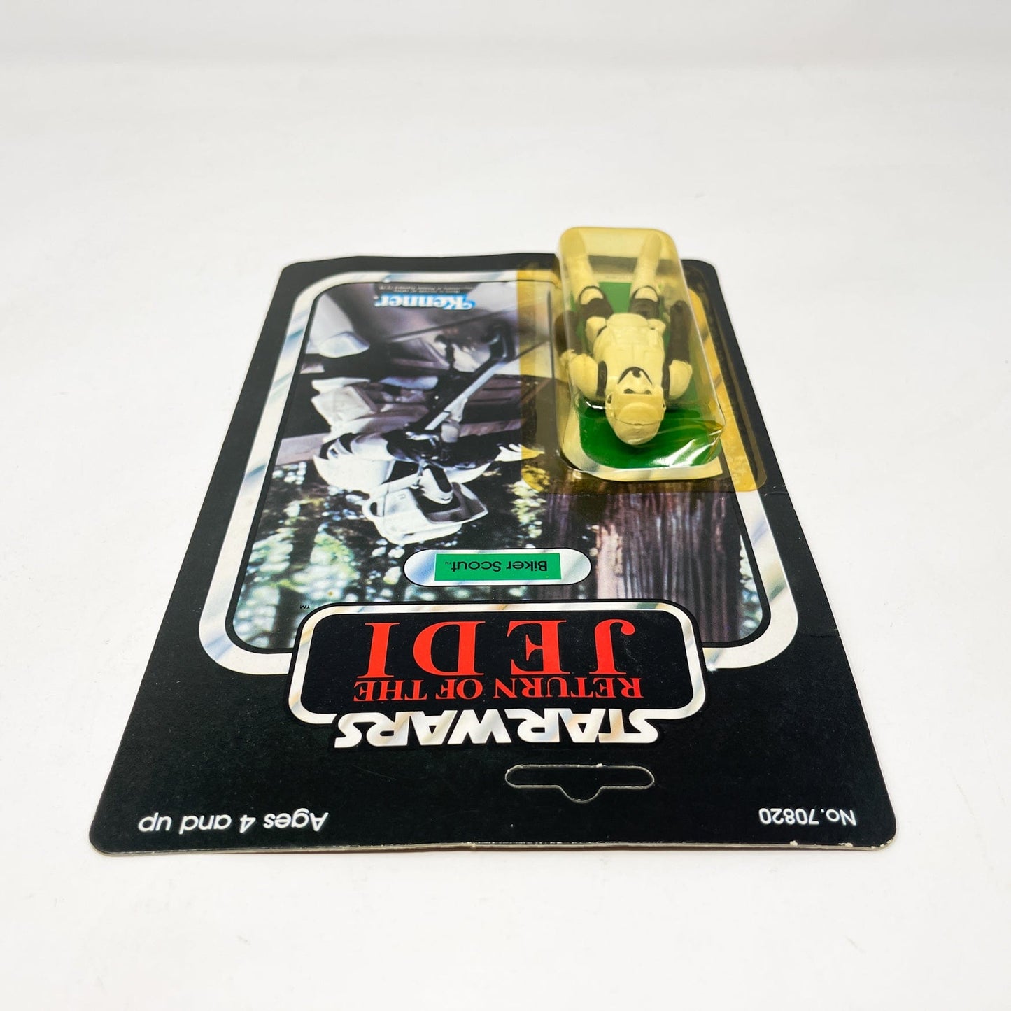 Biker Scout mint and sealed on card (MOC) on Return of the Jedi cardback. Although this is a US carded figure, note that there is a Canadian Consumers Distributing price tag on the back.