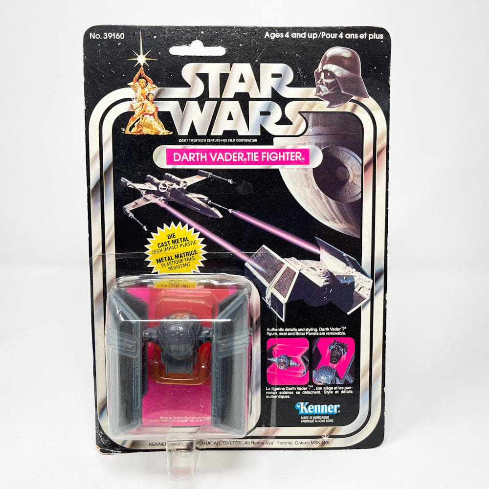 Die Cast Darth Vader TIE Fighter, sealed on a Kenner Canada 20-back cardback.  Love the GDE logo on the back.