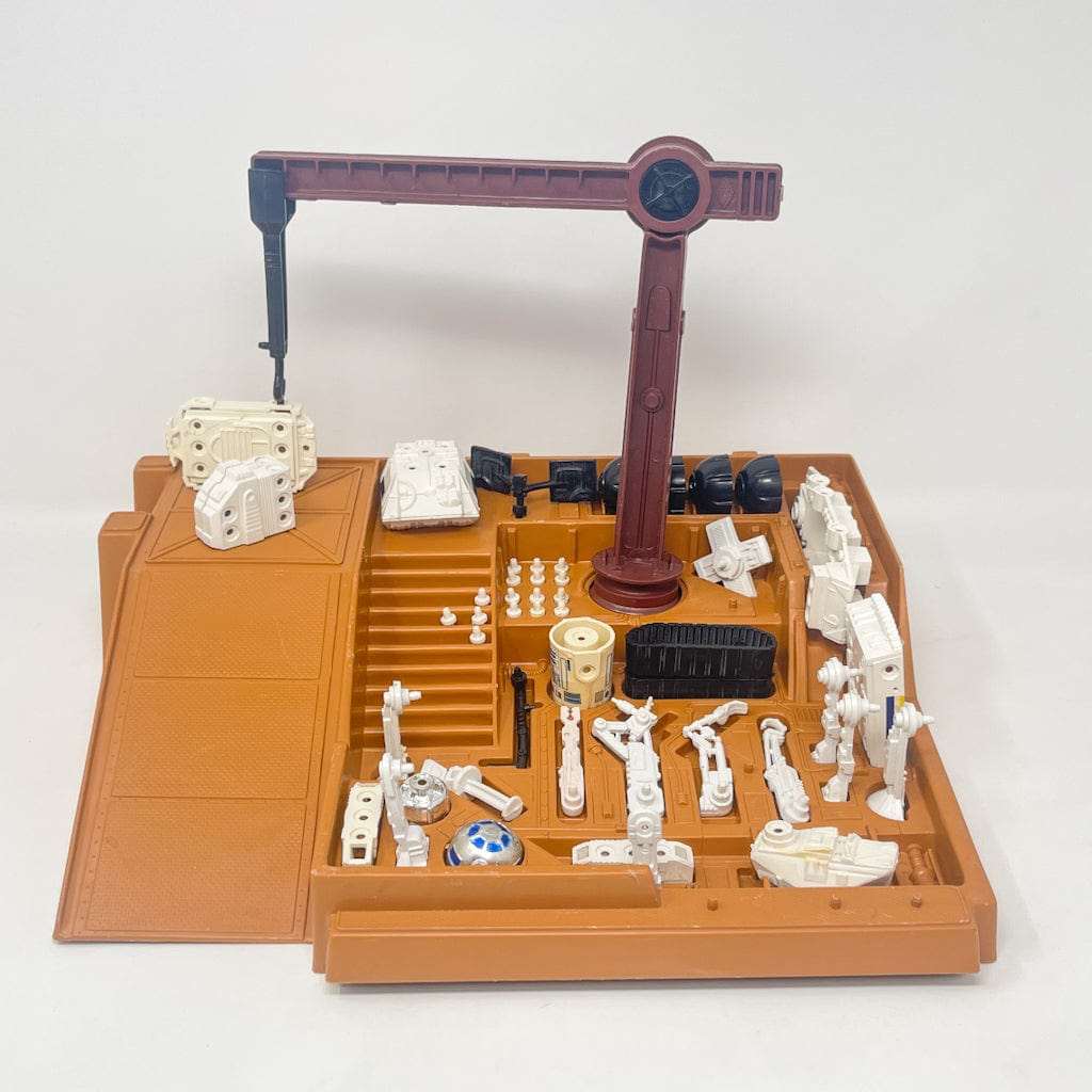 This vintage Droid Factory is complete, except for the orange tubes and metal rods. All the other little pieces are there, including all 16 connectors. Also includes the 3-legged R2-D2.