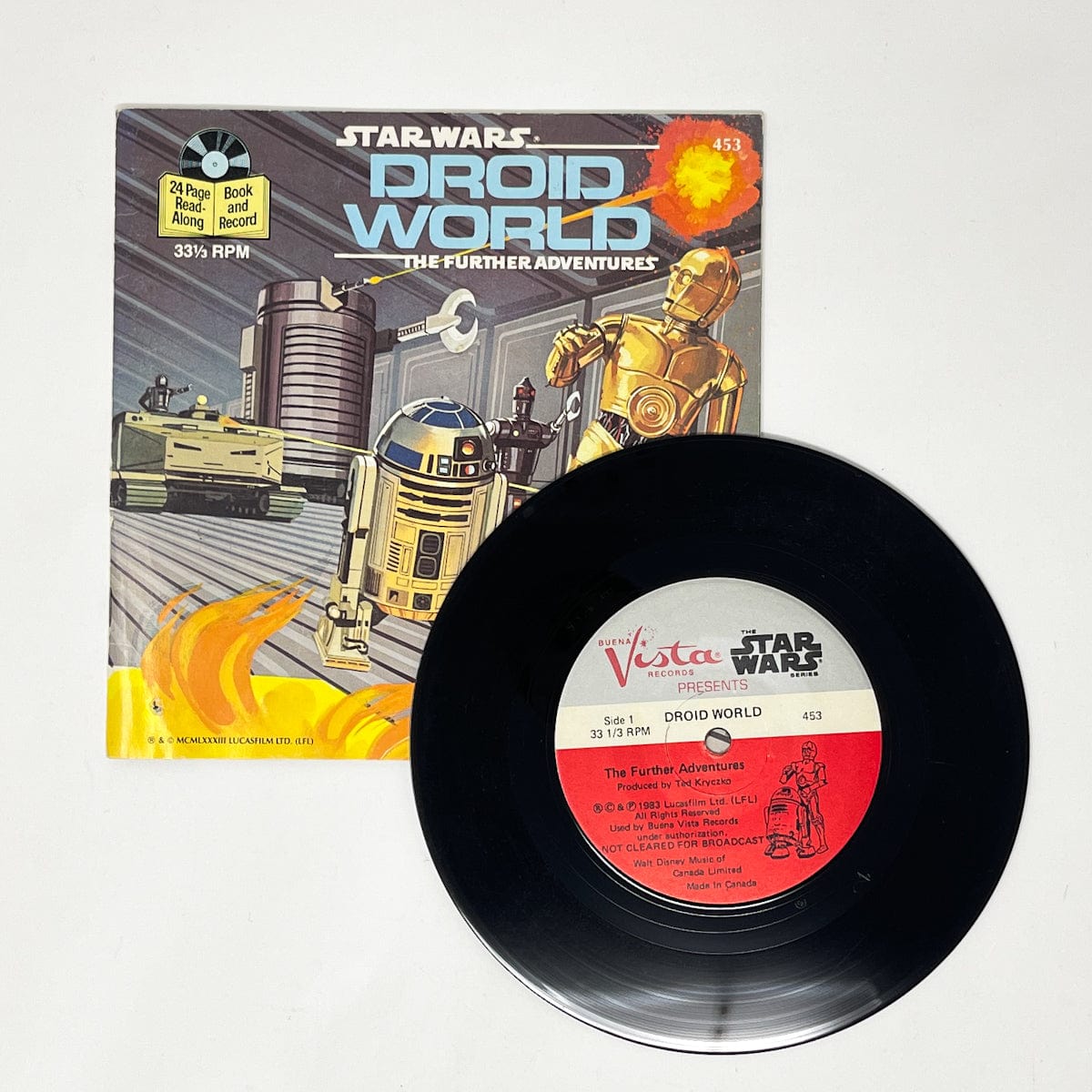 Droids getting up to shenanigans in this illustrated children's book and Read-A-Long record. 1983 from Buena Vista.