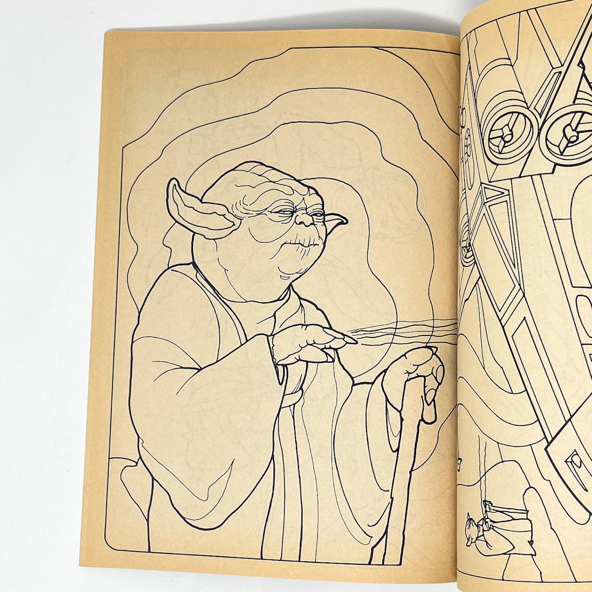 Empire Strikes Back colouring book made by Kenner Canada and released in 1982. French logo on one side, English on the other. Both sides feature the same picture of Vader with two Stormtroopers.