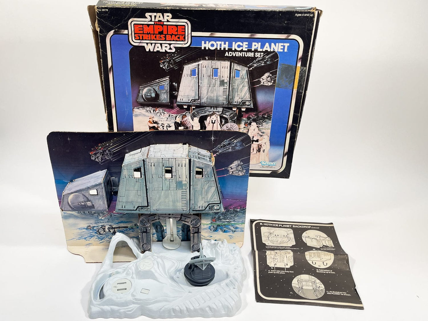 Vintage Kenner Hoth Ice Planet playset featuring AT-AT backdrop and radar laser canon. Originally released in 1978.