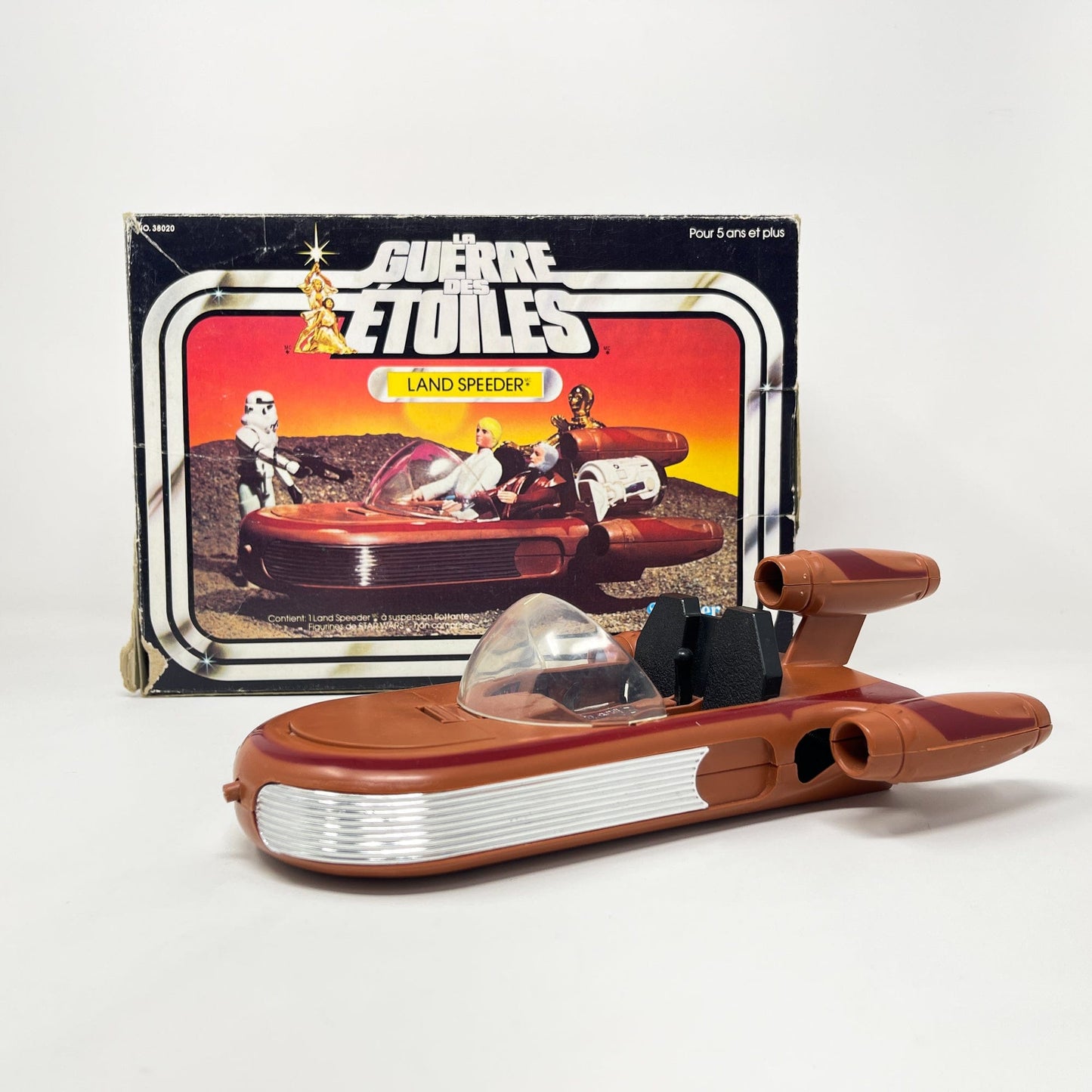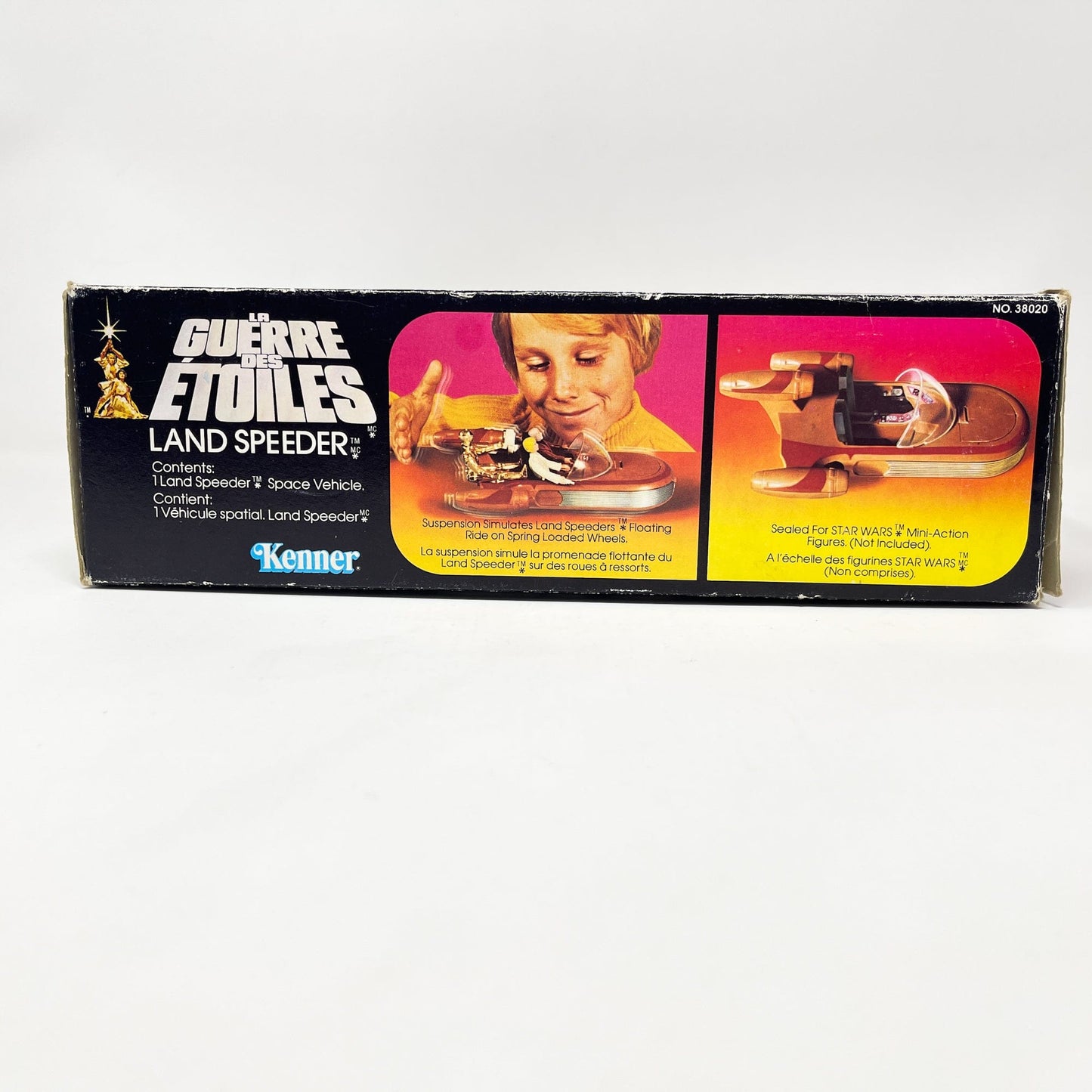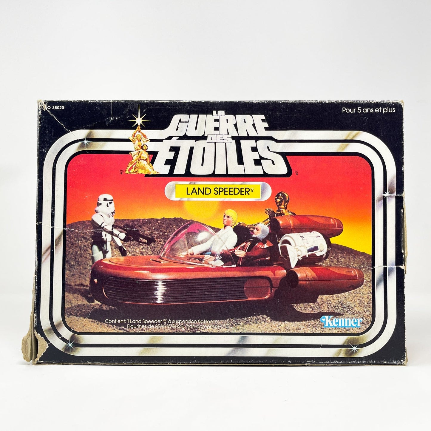 Landspeeder in Canadian box with the French Guerre des Etoiles pyramid logo on one side. Released in 1978, this Canadian box variation is sought after for the awesome pyramid logo which only appeared on the Star Wars ships and some cardbacks.