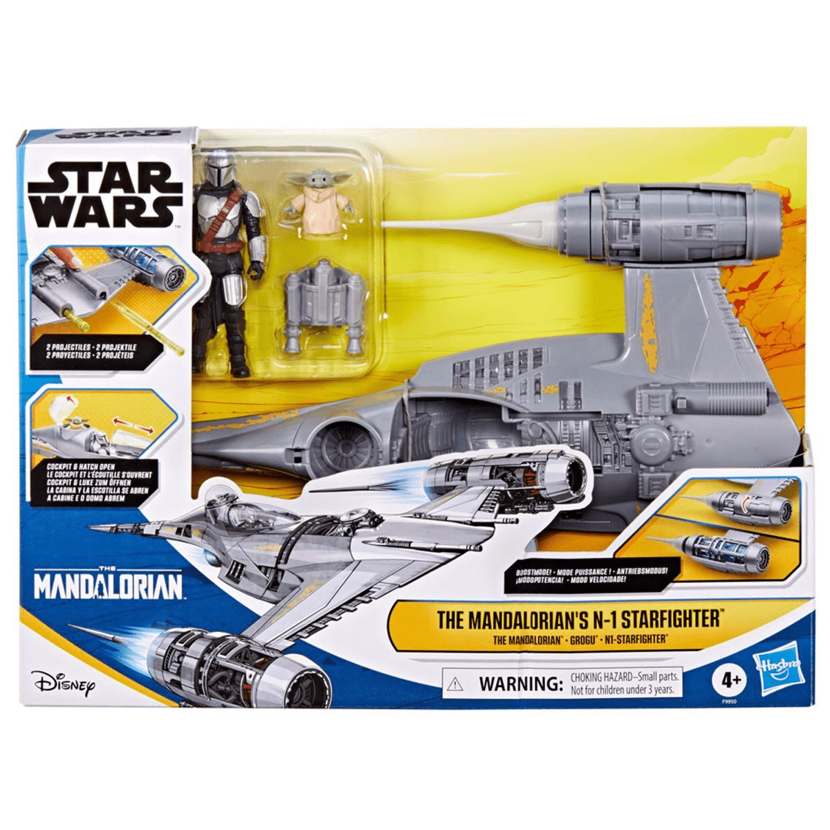 Take playtime to the next level with the Star Wars Epic Hero Series The Mandalorian's N-1 Starfighter set! This Mandalorian toy comes with the N-1 Starfighter, a Mandalorian action figure, a Grogu mini action figure, and 4 accessories. Place the Mandalorian figure in the cockpit, seat Grogu in his very own hatch, and load the 2 included projectiles into the ports on the ship. Now you're ready to take on the galaxy! Launch projectiles with the push of a button and even engage boost mode, which reveals translucent ship parts by sliding the engines on the sides of the ship. Star Wars Epic Hero Series action figures for boys and girls make great gifts for the Star Wars fan in your life. Look for even more figures and vehicles to collect across Hasbro's Epic Hero Series world of play, featuring kid-favorite characters and entertainment-inspired design. Includes: 2 figures, 1 vehicle, and 4 accessories. Ages 4 and up.