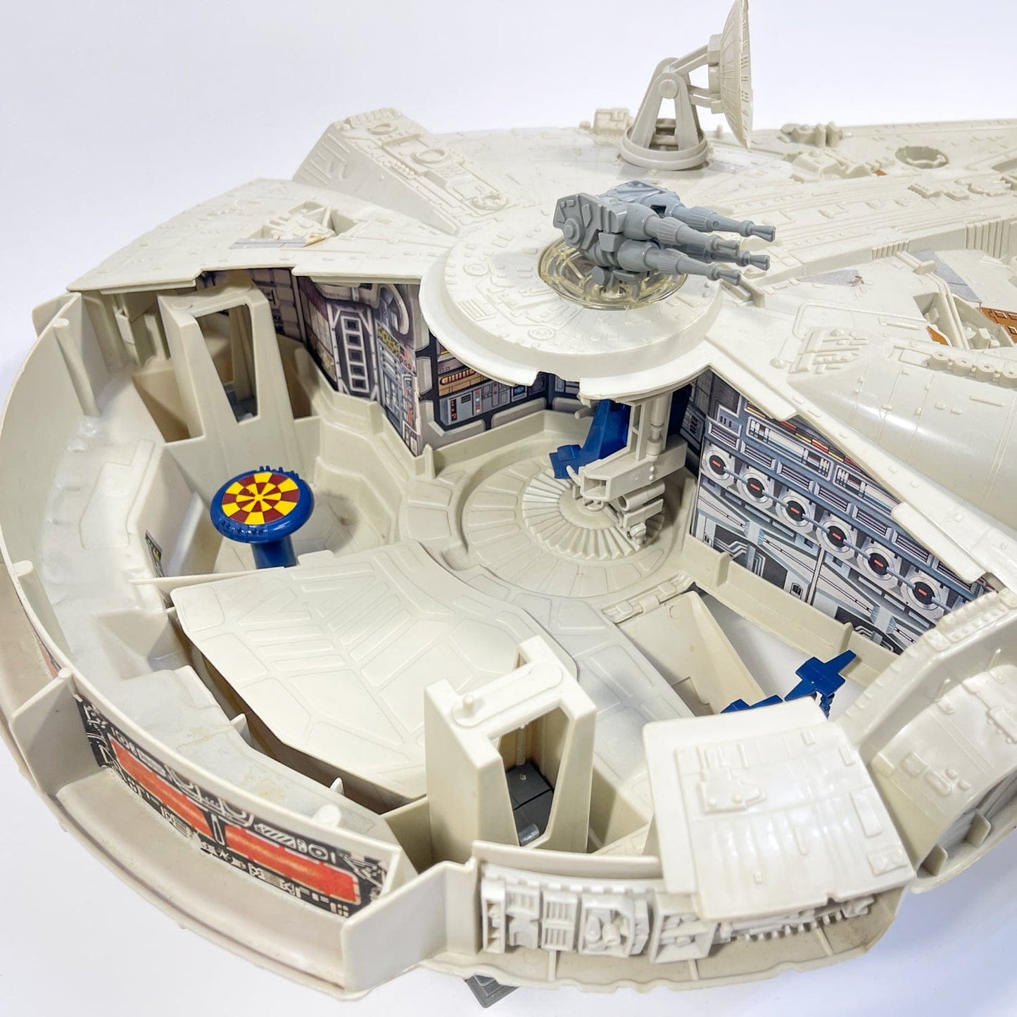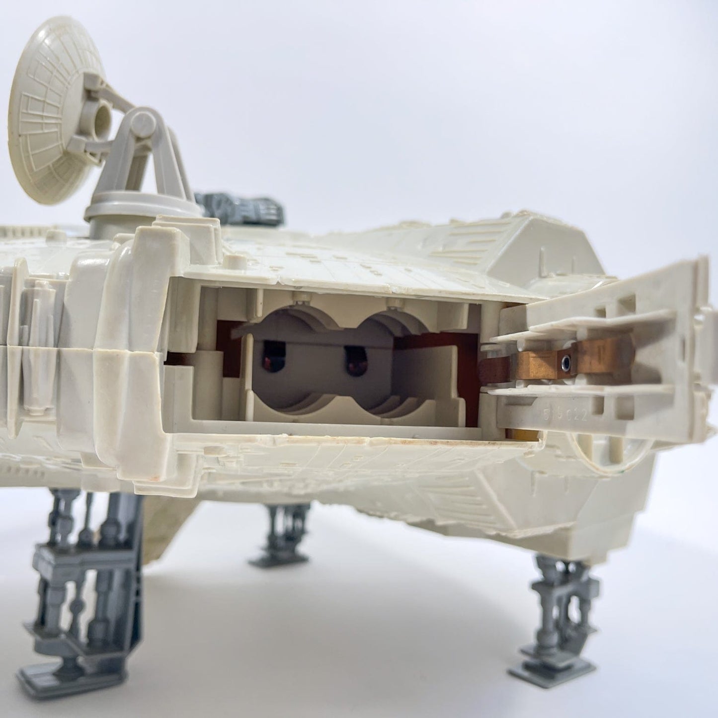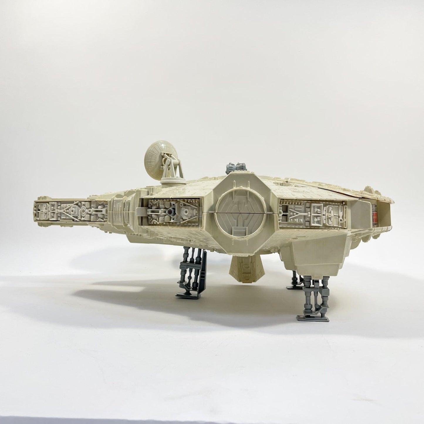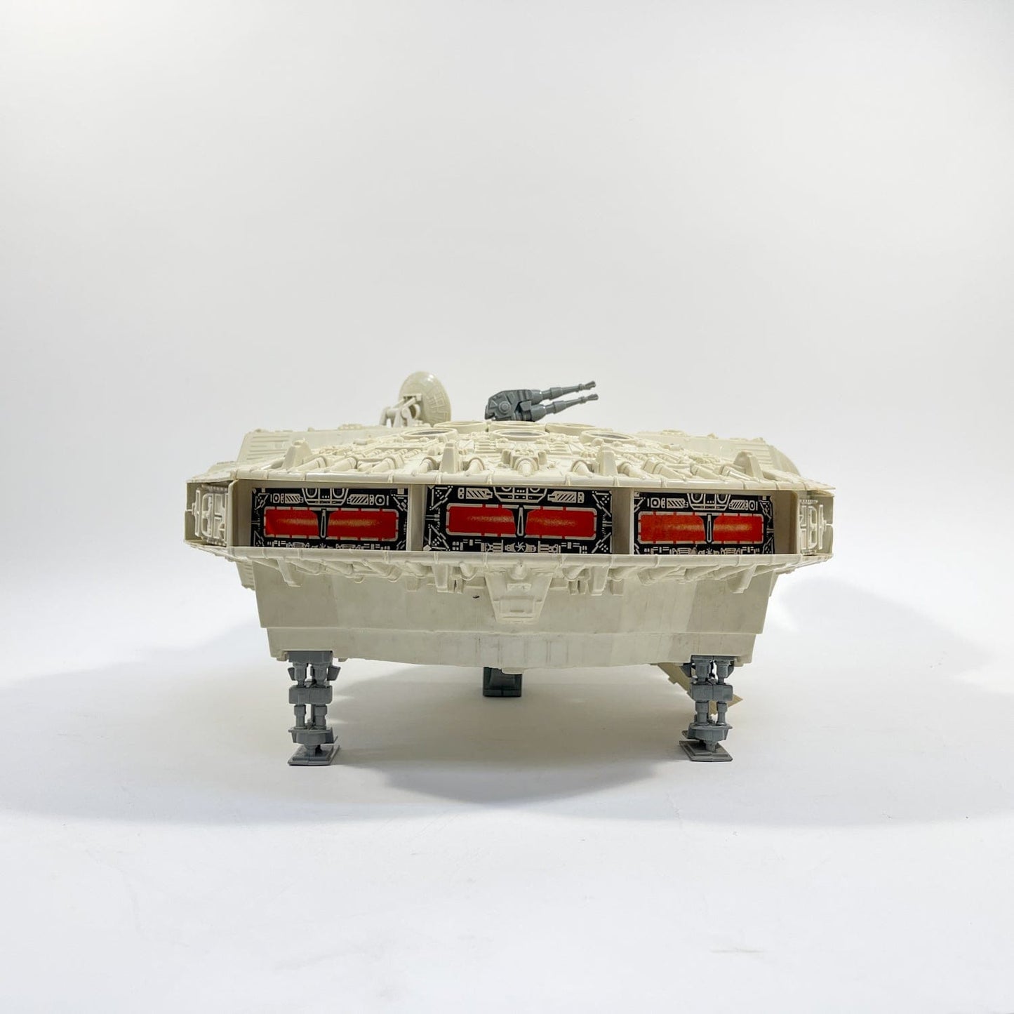 This Falcon is in great condition. It is complete including the elusive training ball and arm (missing the little string). It includes cockpit cover, satellite dish, gunner chair and top canons, top hatch, smuggler floor, chess table, ramp and struts.