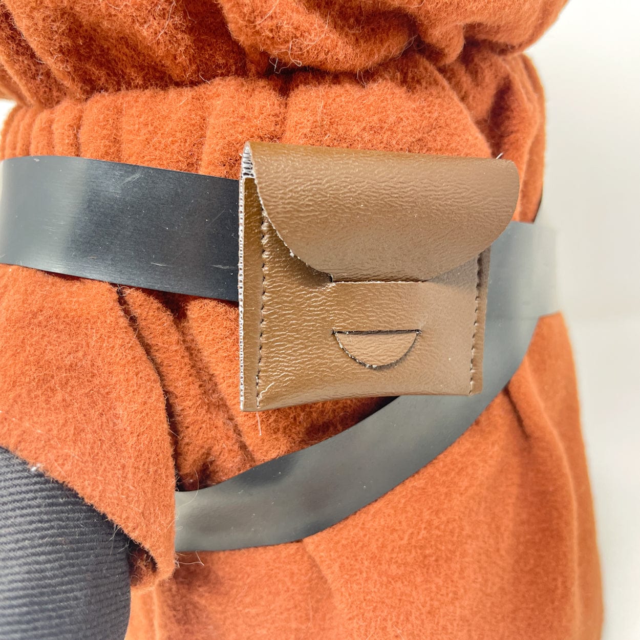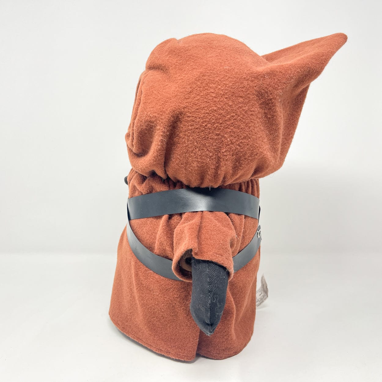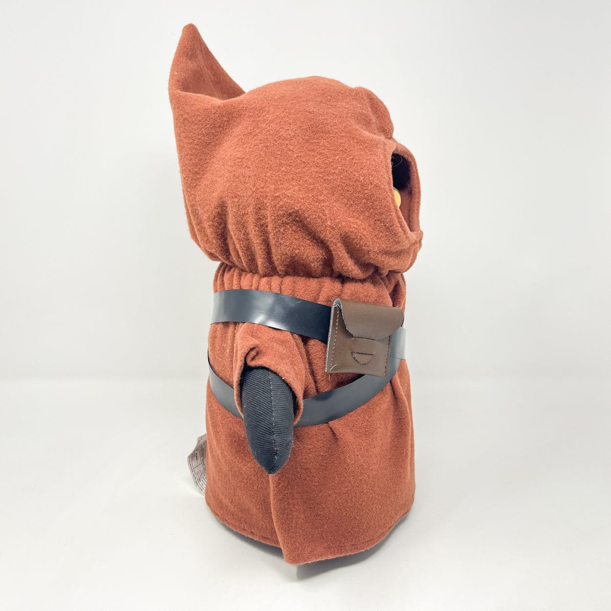 Produced exclusively for the Canadian market by Regal Toys in 1978, this large Jawa plush originated from a Kenner prototype concept that was never released in the United States. Standing approximately 15 inches tall, it features a soft poly-filled body, felt cloak, gold eyes, and a functional squeaker in the left hand. Includes both vinyl bandoliers and a fabric satchel.