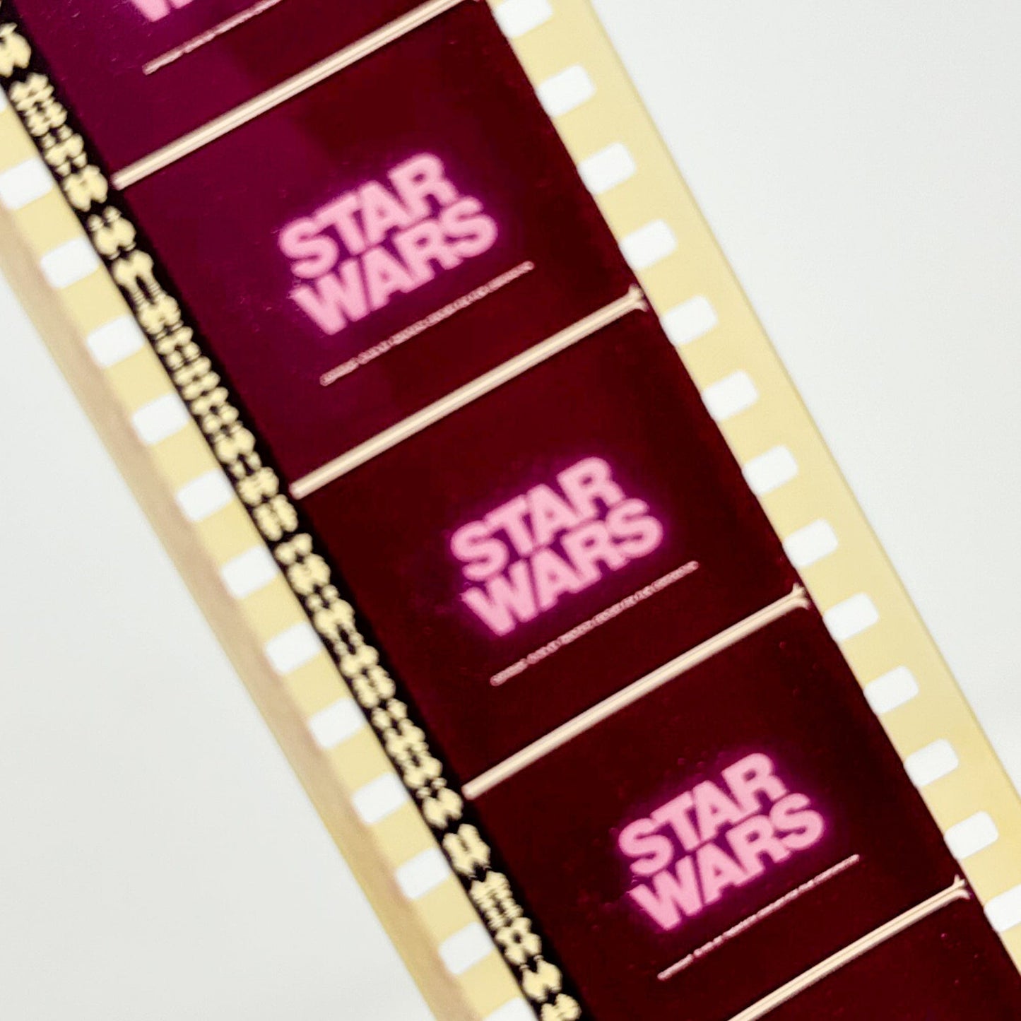 Original Star Wars Movie Trailer from 1977. Has "STAR WARS" etched into the first few frames. Also has tape label. First picture shows some frames from the reel, this is the end of the trailer, where the SW logo blows up.