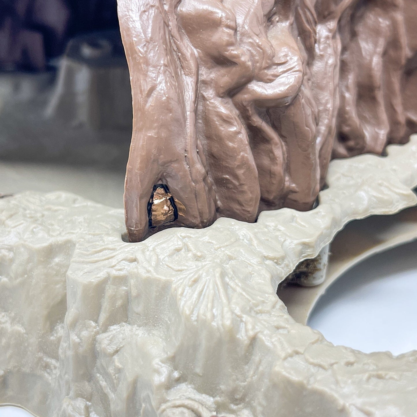 Stephen has autographed the top of the playsets, and personally outlined the hidden names. Geddes also sculpted in a mini self-portrait in the base of the tree, saying "It didn’t survive the tooling process gracefully, but I highlighted it anyway".