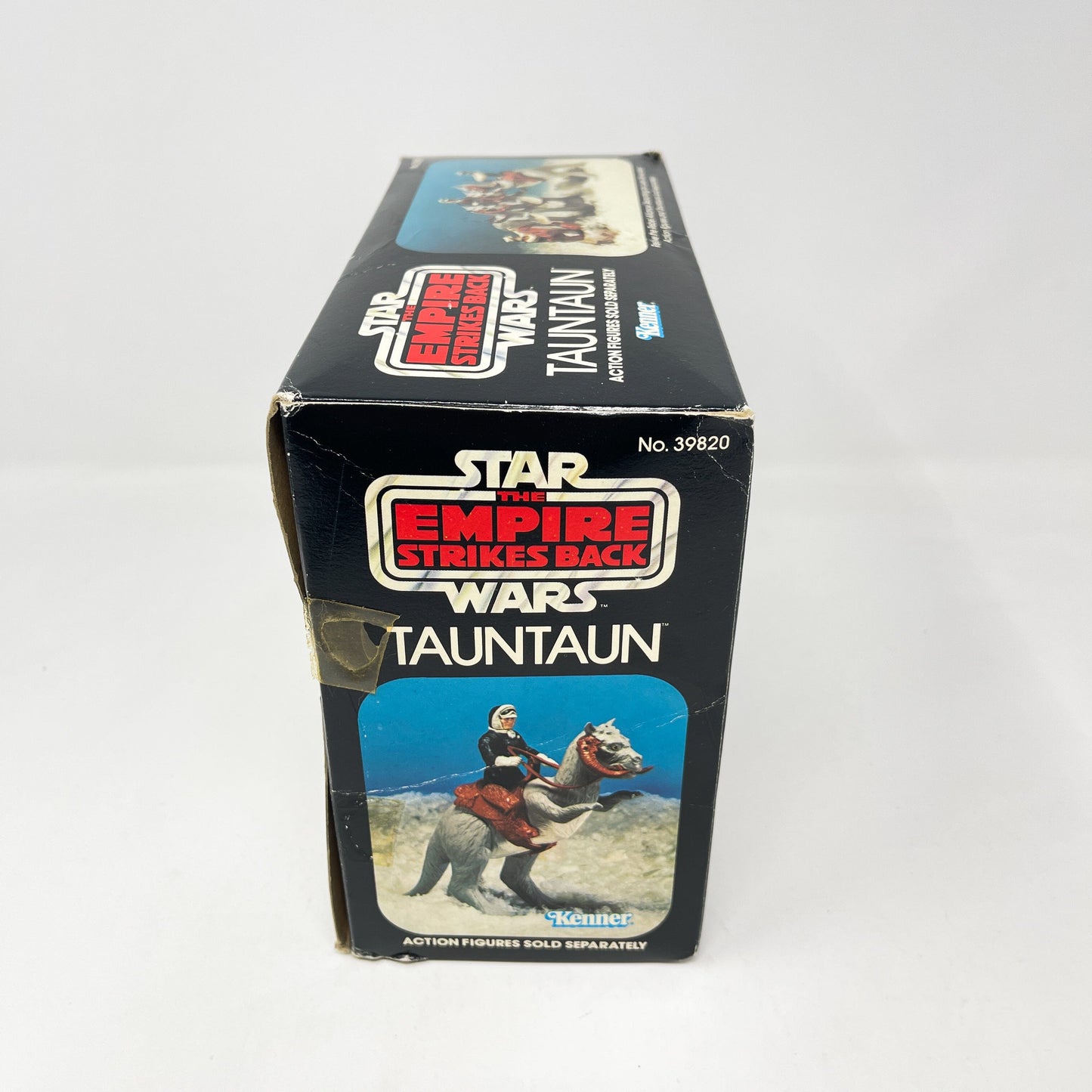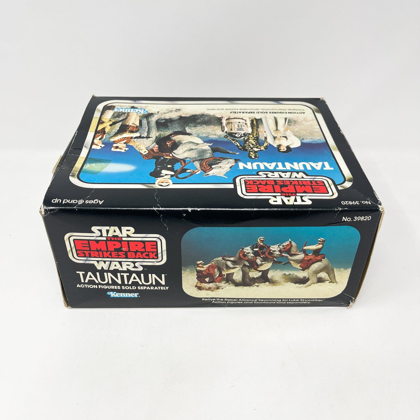 TaunTaun is complete. The reigns and saddle are still intact. Box shows wear and the POP has been cut out. The glue has dried out along the bottom on one side (see pics), still displays perfectly fine.