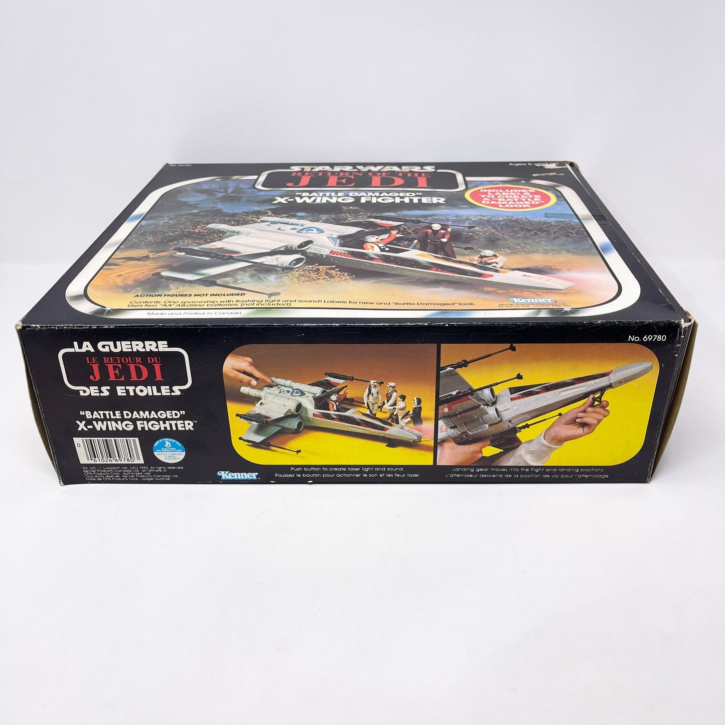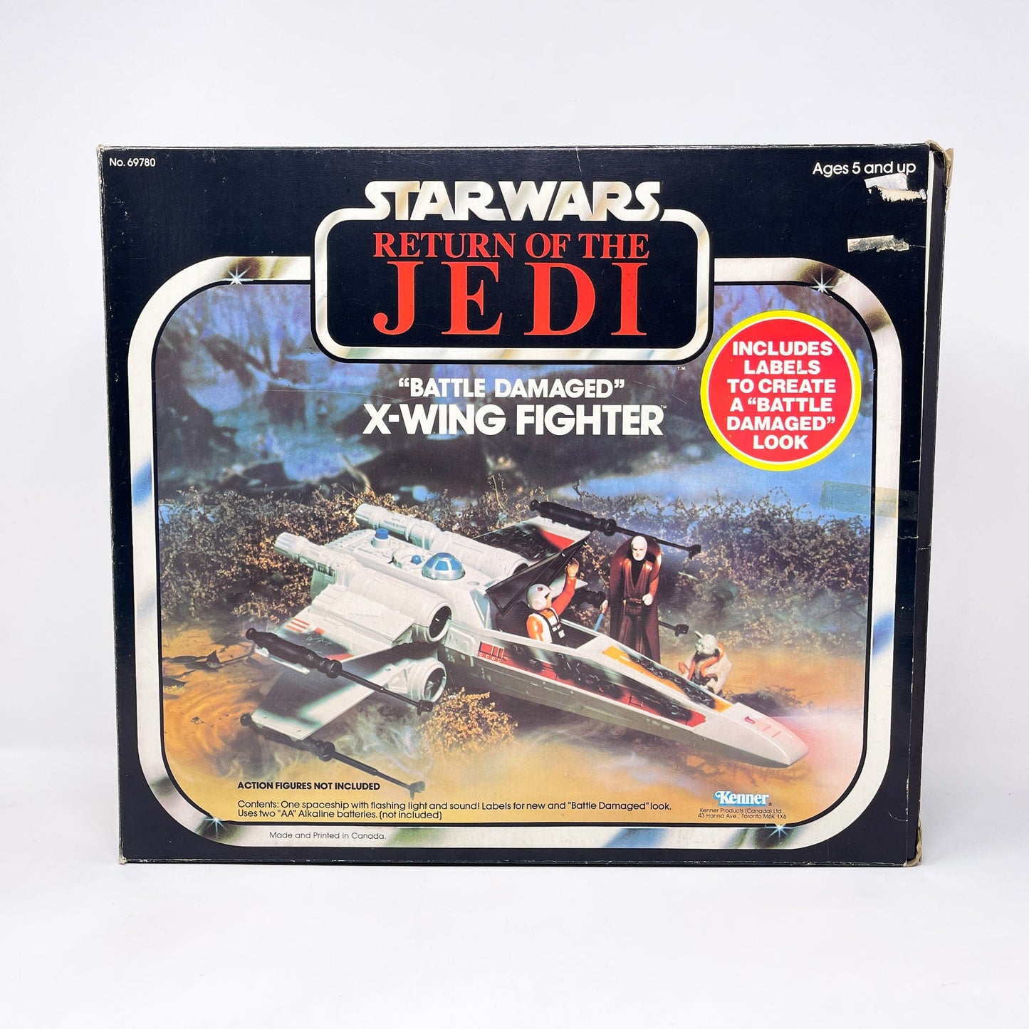 Rare and hard to find Canadian ROTJ Battle Damaged X-Wing, complete in box.